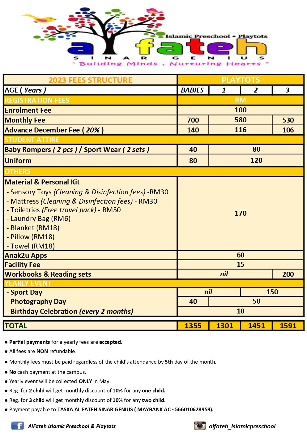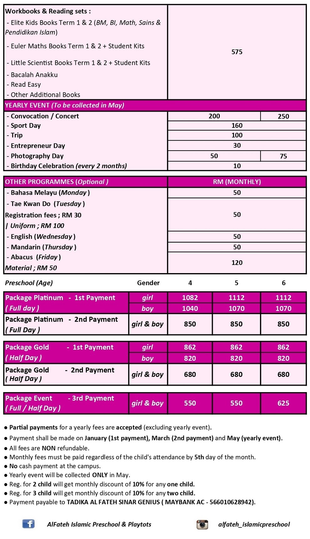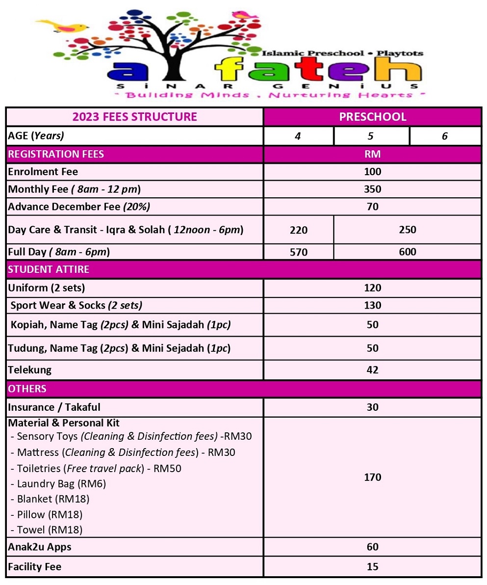 English & Bahasa Malaysia, English, Bahasa Malaysia, Math, Science, Iqra, Islamic Studies