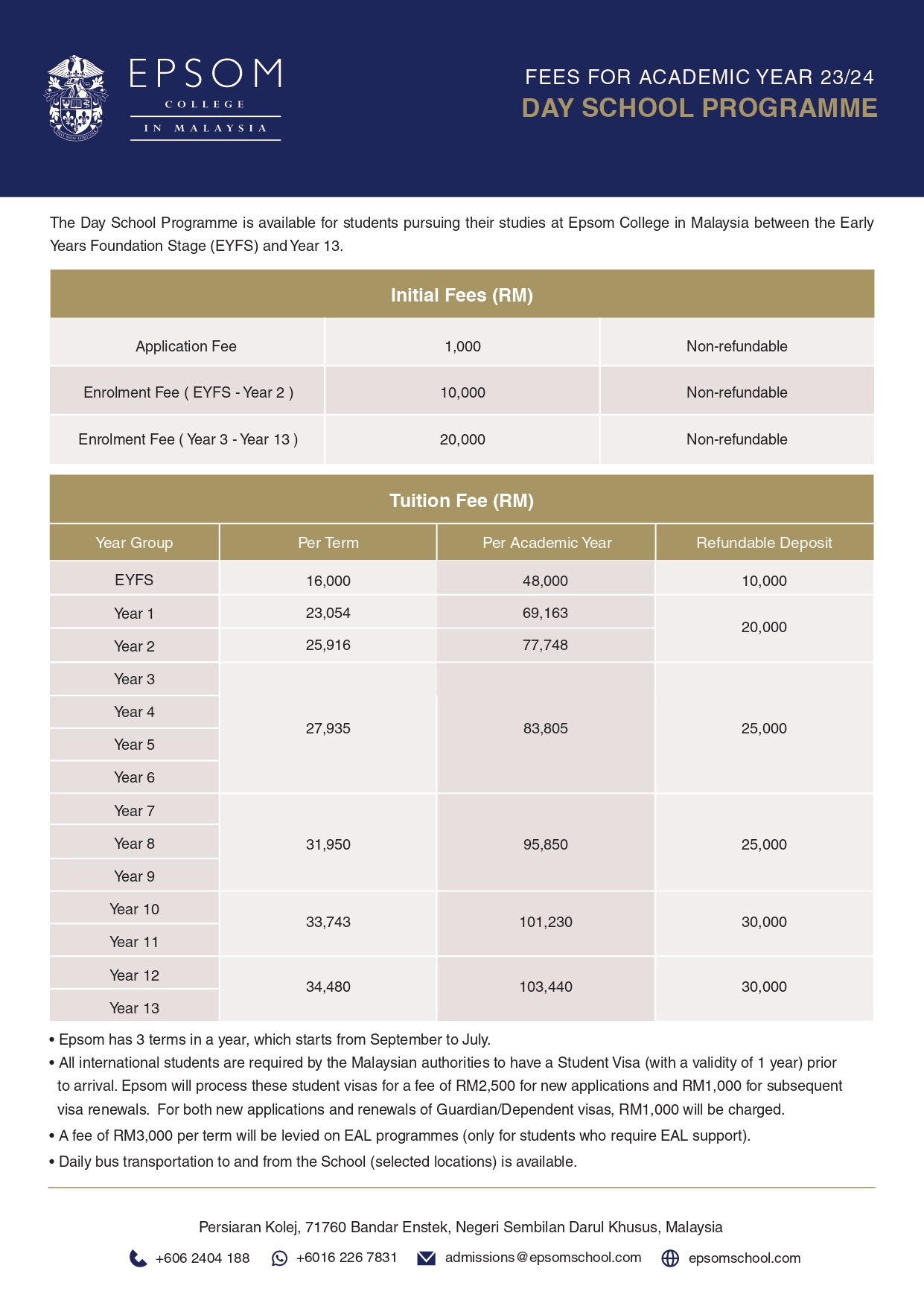 Epsom is a co-ed British Day and Boarding School for students aged 3-18 years. We are located 15 minutes from KLIA in Bandar Enstek and follow the English National Curriculum. While our long and successful British heritage stems from our sister school of the renowned Epsom College UK - one of the very top UK independent schools - our mindset is global and we embrace the diverse culture of our student body and take delight in the beautiful Malaysian community in which we reside in.